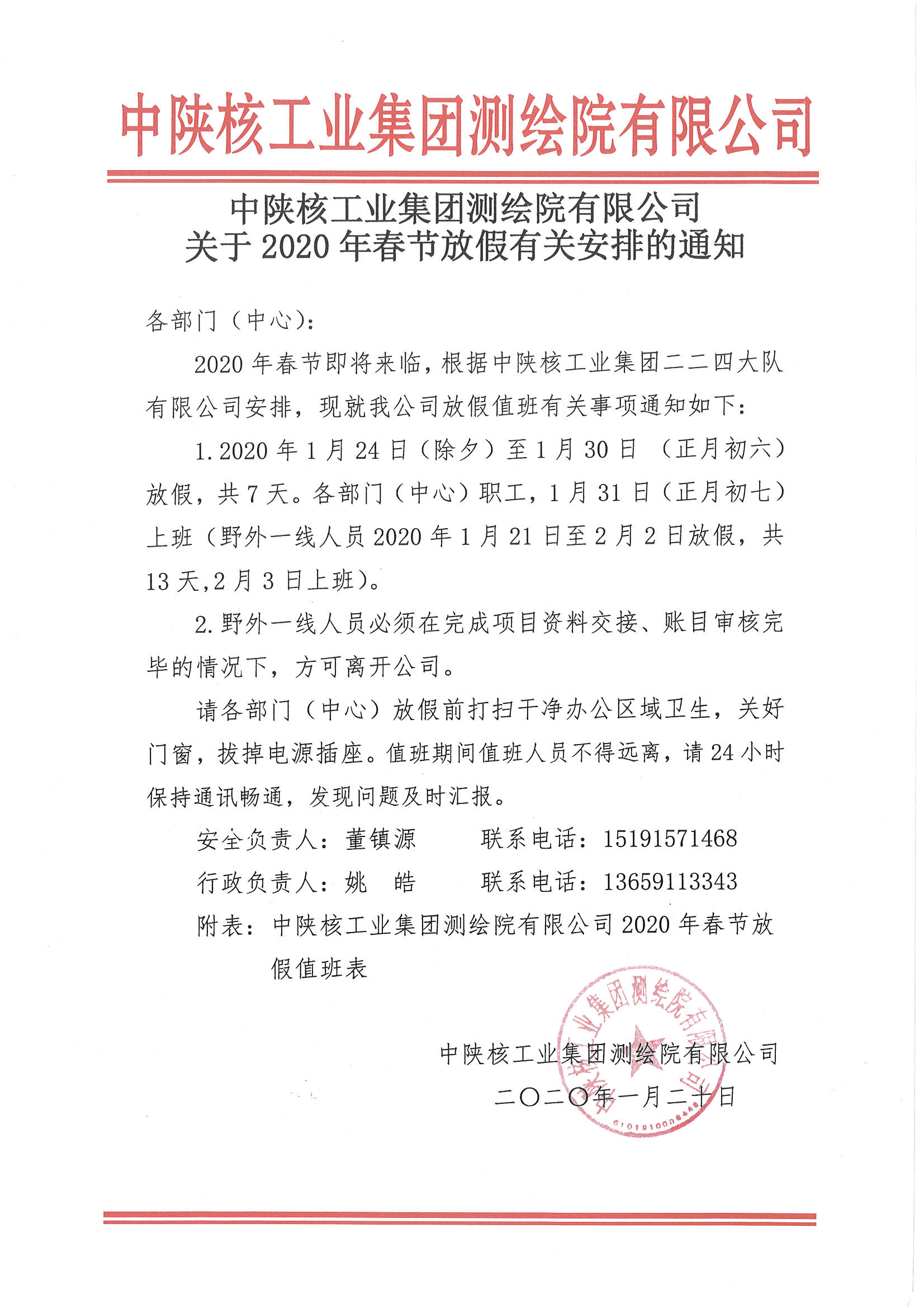 關(guān)于2020年春節(jié)放假有關(guān)安排的通知