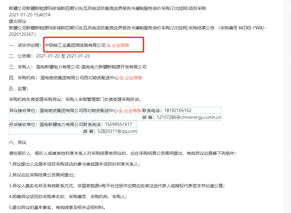 1月20日,新疆分公司傳來喜訊,在這2021年的開篇時間節(jié)點上,測繪院連續(xù)中標“新疆公司新疆新能源瑪依塔斯三期49.5兆瓦風電項目勘測定界報告書編制服務詢價采購項目”、“新疆公司新疆新能源瑪依塔斯四期50兆瓦風電項目勘測定界報告書編制服務詢價采購項目”。