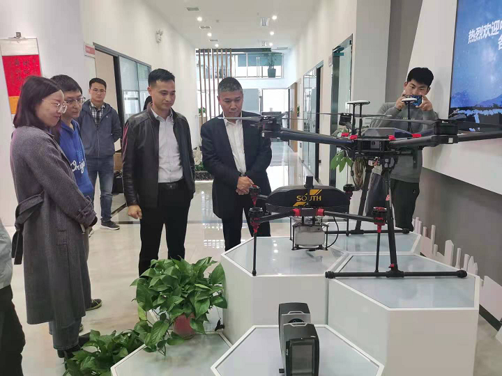 胡祺副總經理一行認真參觀了南方測繪西安分公司的企業(yè)文化宣傳墻、數據采集室、軟件研發(fā)室、無人機和三維激光掃描儀、測量船等國內最先進的儀器設備。