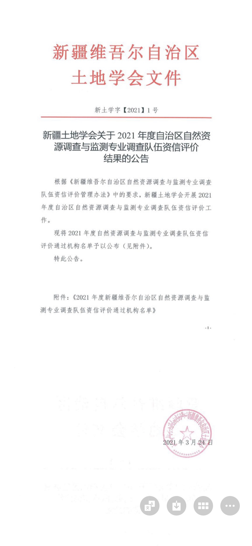 業(yè)績(jī)展示近日,新疆維吾爾自治區(qū)土地學(xué)會(huì)2021年3月24日公告發(fā)布,在新疆土地學(xué)會(huì)組織開(kāi)展的2021年度自治區(qū)自然資源調(diào)查與監(jiān)測(cè)專(zhuān)業(yè)調(diào)查隊(duì)伍資信評(píng)價(jià)中,中陜核工業(yè)集團(tuán)測(cè)繪院有限公司新疆分公司順利通過(guò)評(píng)審。