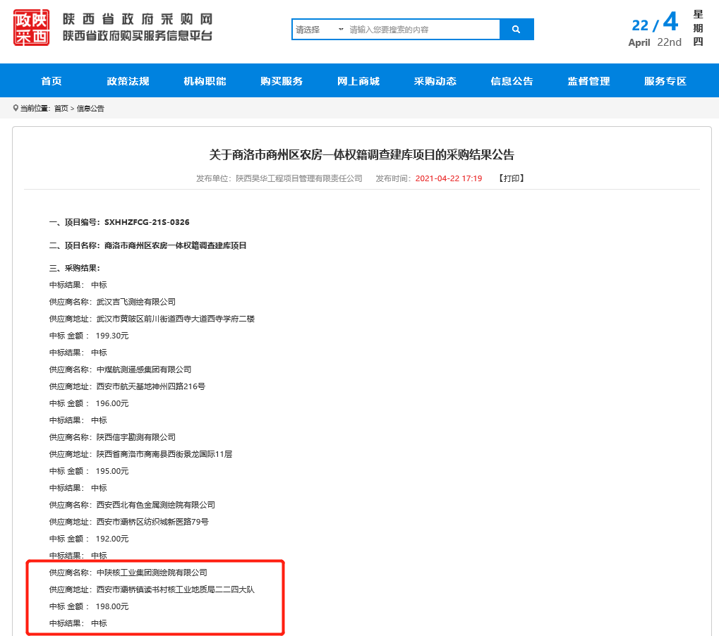 喜訊!熱烈祝賀我公司成功中標“商洛市商州區(qū)房地一體權(quán)籍調(diào)查建庫項目第七標段”