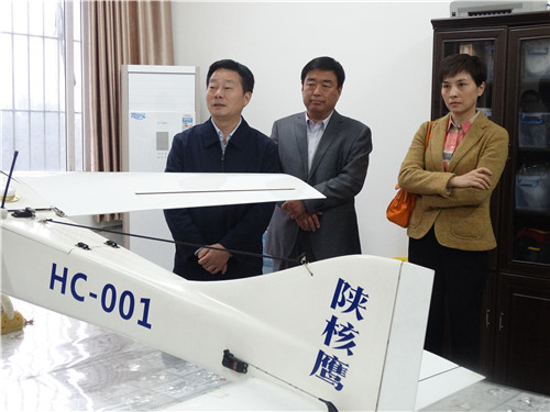 湖南省核工業(yè)地質(zhì)局何寄華局長一行認真查看了我院的資質(zhì)平臺建設和儀器室情況,聽取了我院總工程師方小龍對自主研發(fā)的油動固定翼無人機“陜核鷹”的作業(yè)特點及飛行情況的介紹,隨后又在航測中心內(nèi)業(yè)制圖室詳細詢問了航測4D產(chǎn)品制作流程。