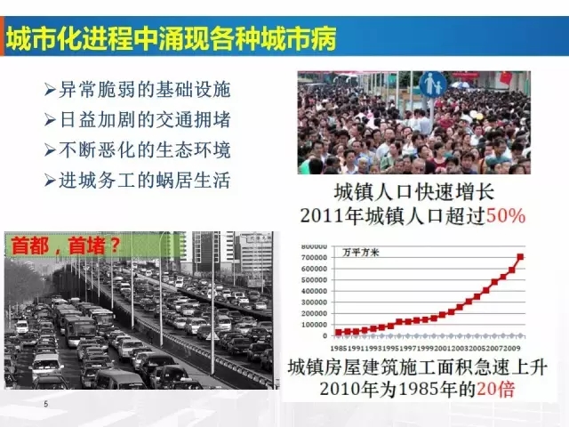 城鎮(zhèn)化就會(huì)帶來(lái)一些復(fù)雜的系統(tǒng)方面的問(wèn)題:異常脆弱的基礎(chǔ)設(shè)施,日益加劇的交通擁堵,不斷惡化的生態(tài)環(huán)境和進(jìn)城務(wù)工者的蝸居生活,這就是我們超大城市面臨的幾個(gè)主要的問(wèn)題。