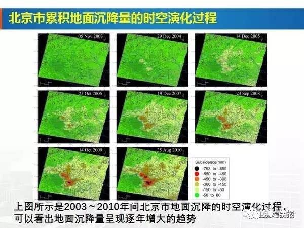 沉降逐年的變化,是越來(lái)越快,從2003年看不到明顯的沉降,到了2010年沉降是越來(lái)越明顯,我們已經(jīng)把這些成果報(bào)給了中央領(lǐng)導(dǎo)。