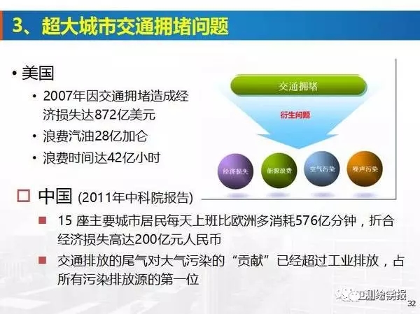 那么美國(guó)也有類似的問(wèn)題,大家看2007年美國(guó)因?yàn)榻煌ǘ氯斐傻慕?jīng)濟(jì)損失是872億美元,浪費(fèi)的汽油,浪費(fèi)的時(shí)間是42億小時(shí)。而中科院2011年的報(bào)告顯示,中國(guó)15座城市的居民每天上班比歐洲多消耗576億分鐘,折合損失也是200億人民幣。而釋放出來(lái)的尾氣,對(duì)我們的大氣污染有很大的“貢獻(xiàn)”,造成了霧霾、PM2.5等等。