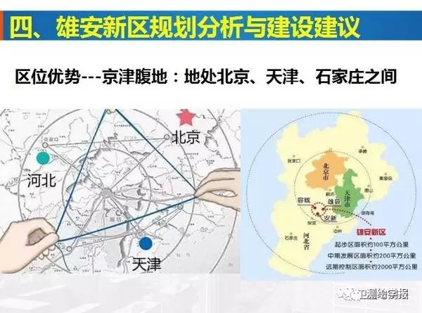 所以呢,講到這,我們覺得中央領(lǐng)導(dǎo)應(yīng)及時(shí)地對(duì)雄安新區(qū)的發(fā)展重視規(guī)劃和建設(shè)的問(wèn)題。我們認(rèn)為,這個(gè)區(qū)域具有區(qū)位優(yōu)勢(shì):它是一個(gè)京津腹地,跟北京、天津構(gòu)成一個(gè)很好的德爾塔三角形 。