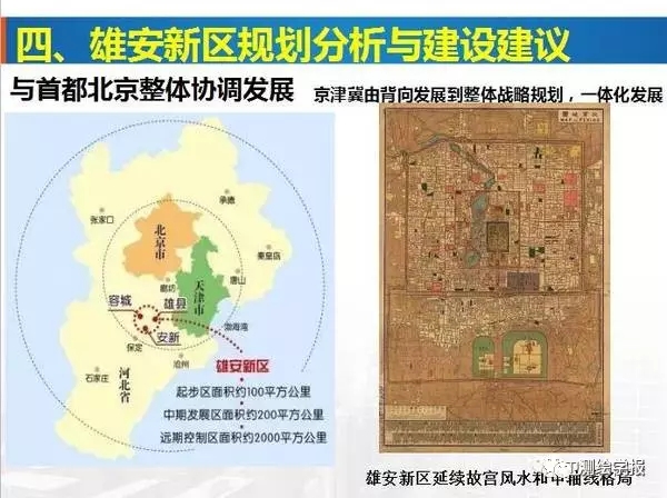看看這張圖,北京、天津、雄安,雄安有可能按照我們的風(fēng)水,故宮的風(fēng)水,建成一個(gè)類似中軸線的格局。就使我們中國(guó)的文化、中國(guó)的文明得到一個(gè)很好的傳承。